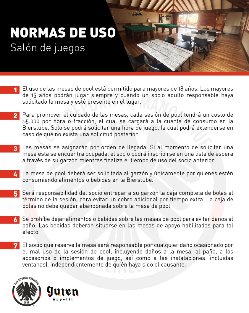 Para todos los que decidan jugar una partida de pool, el precio de cada hora será de $5.000. Pueden revisar las reglas aquí. Es más, podrán disfrutar de dos promociones exclusivas para compartir con quienes ustedes quieran.